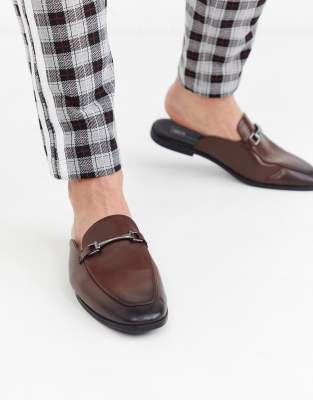 Asos Design Backless Mule Loafer In Brown Faux Leather ...